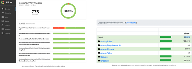 Anhand des Beispiels des Adobe Commerce Automated Testing Frameworks werden auch Berichte mit den Ergebnissen dieser Tests erstellt, die wie folgt aussehen: